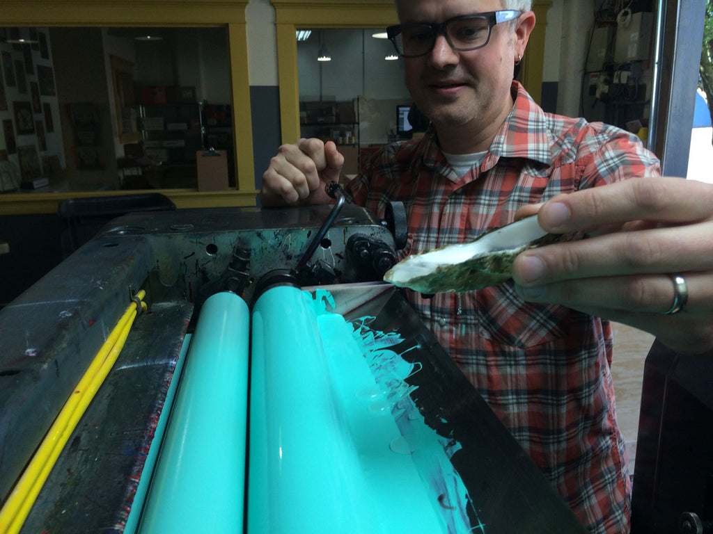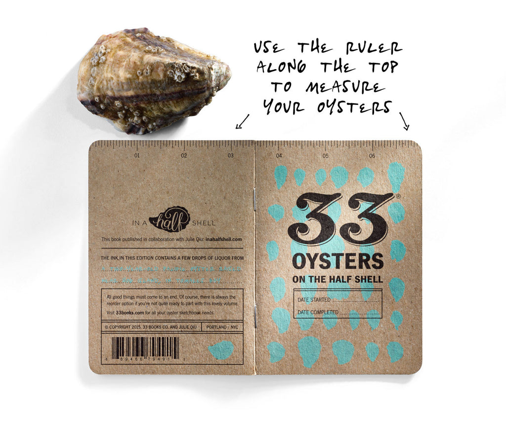 33 Oysters is made with 100% recycled papers sourced in North America. The books are printed with care and infused with a little bit of real oyster liquor in sunny Portland, Oregon.