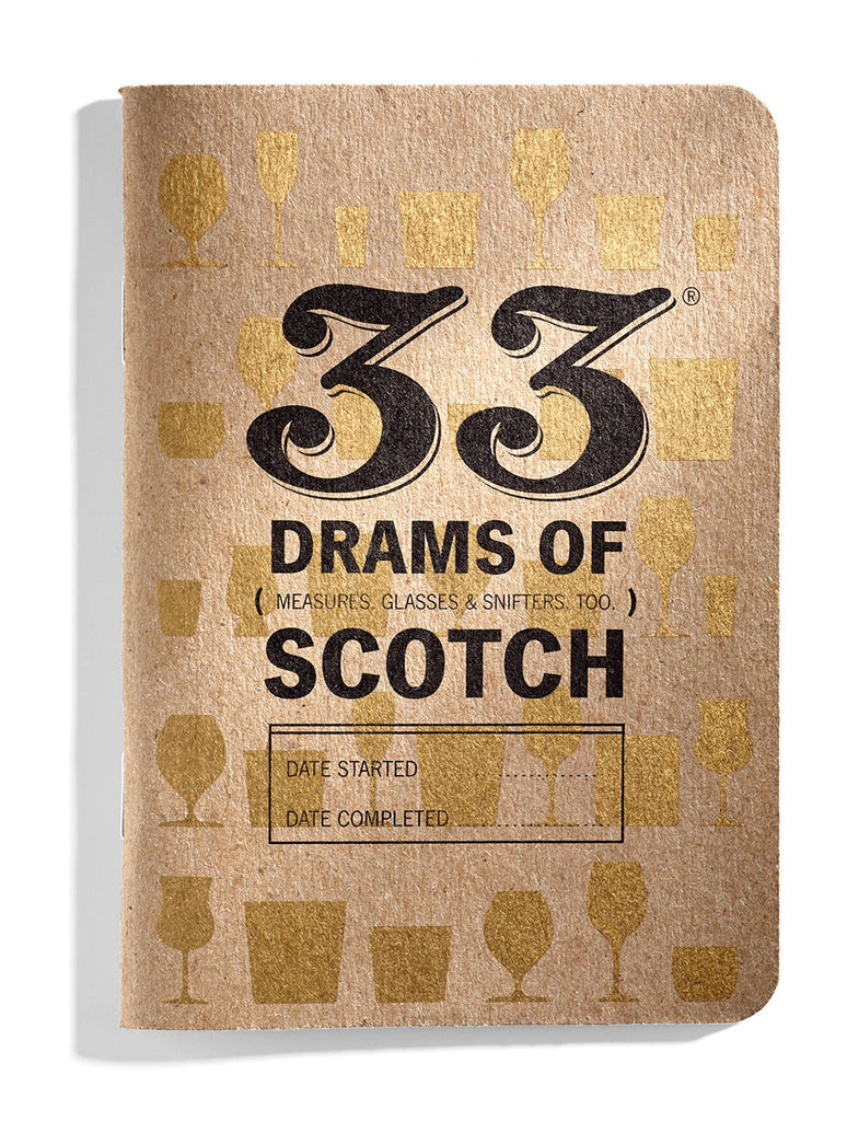 The kit you receive will include three of my popular tasting journals: 33 Drams of Scotch, 33 Bottles of Bourbon, and 33 Glasses of Whiskey (which works well for rye, Canadian, and everything else). The journals each have space to record 33 different whiskies, giving you space for a total of 99 whisk(e)y tasting experiences.