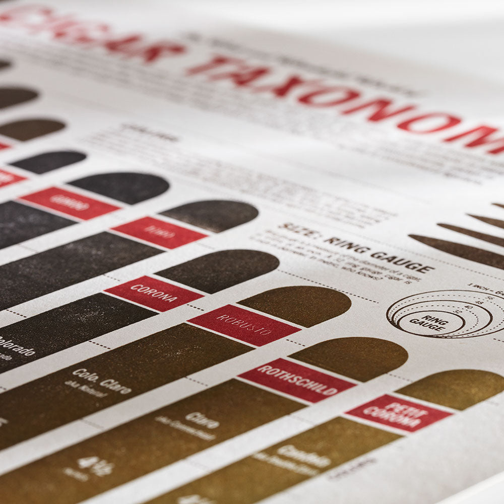 Have you talked to your kids about cigar sizes? No? Well, consider this a teachable moment. My hand-pulled letterpress print makes a great gift for the cigar geek in your life, bringing clarity to the wide and wonderful world of cigar nomenclature.