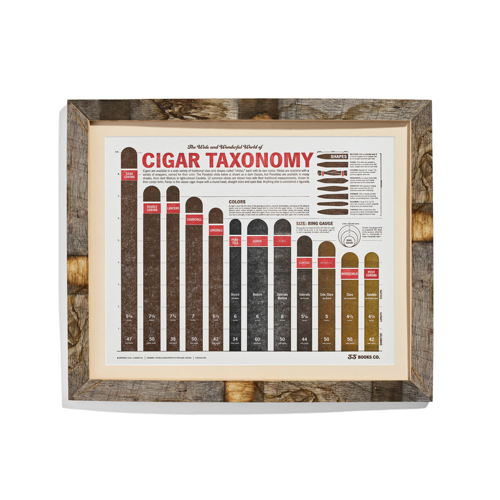 Cigar Taxonomy is a frameable* 11 x 14 inches (23 x 36 cm), perfect for hanging in your man cave, cigar bar, regular bar, or smoking lounge.