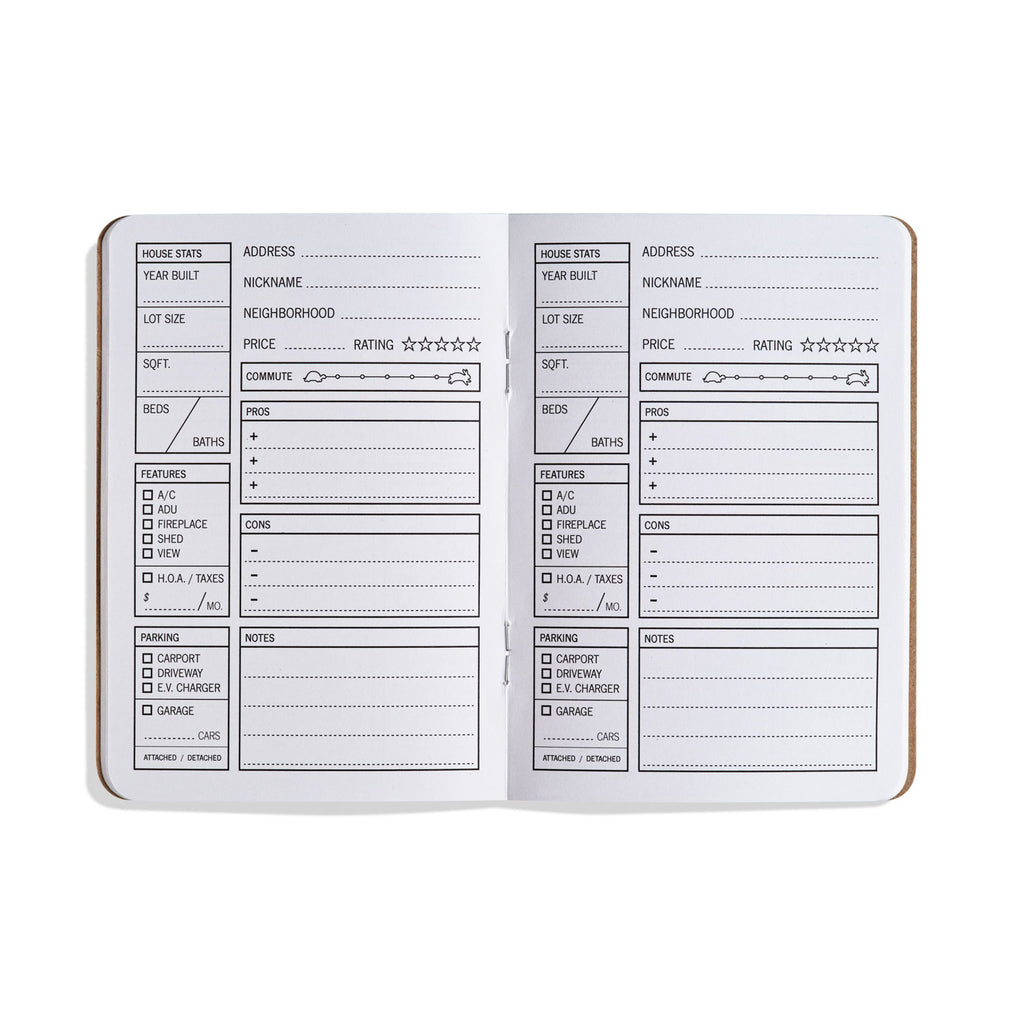 33 Houses is unique journal designed for home shopping, whether that's a beachside condo, European castle, single-family split-level, or an apartment in the city. It provides an easy way to quickly record your notes on the homes you see in a small, convenient format that's thinner than an iPhone and easily fits in glovebox, purse, or pocket.