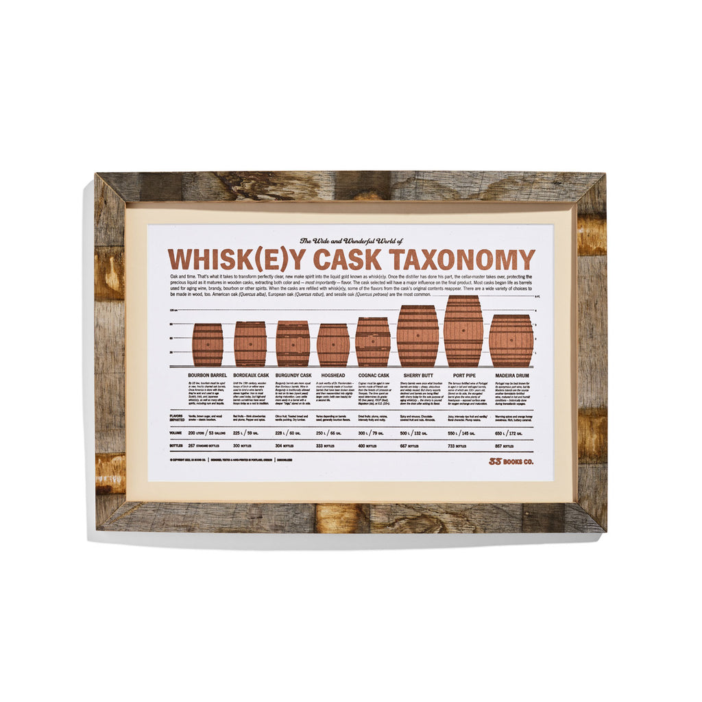 Whisk(e)y Cask Taxonomy explains it all in a frameable 9 x 14 inch letterpress print (23 x 36 cm) perfect for hanging in your barrel room or bar. And speaking of frames ...