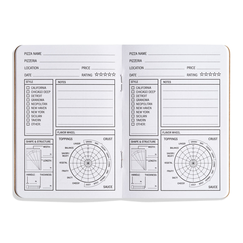 33 Pizzas is a pocket-sized pizza journal designed for speed. It’s tough to hold a notepad in one hand, a pencil in the other, and have another hand left for a slice. Taking notes with 33 Pizzas is as simple as checking a few boxes and entering a few basic facts.