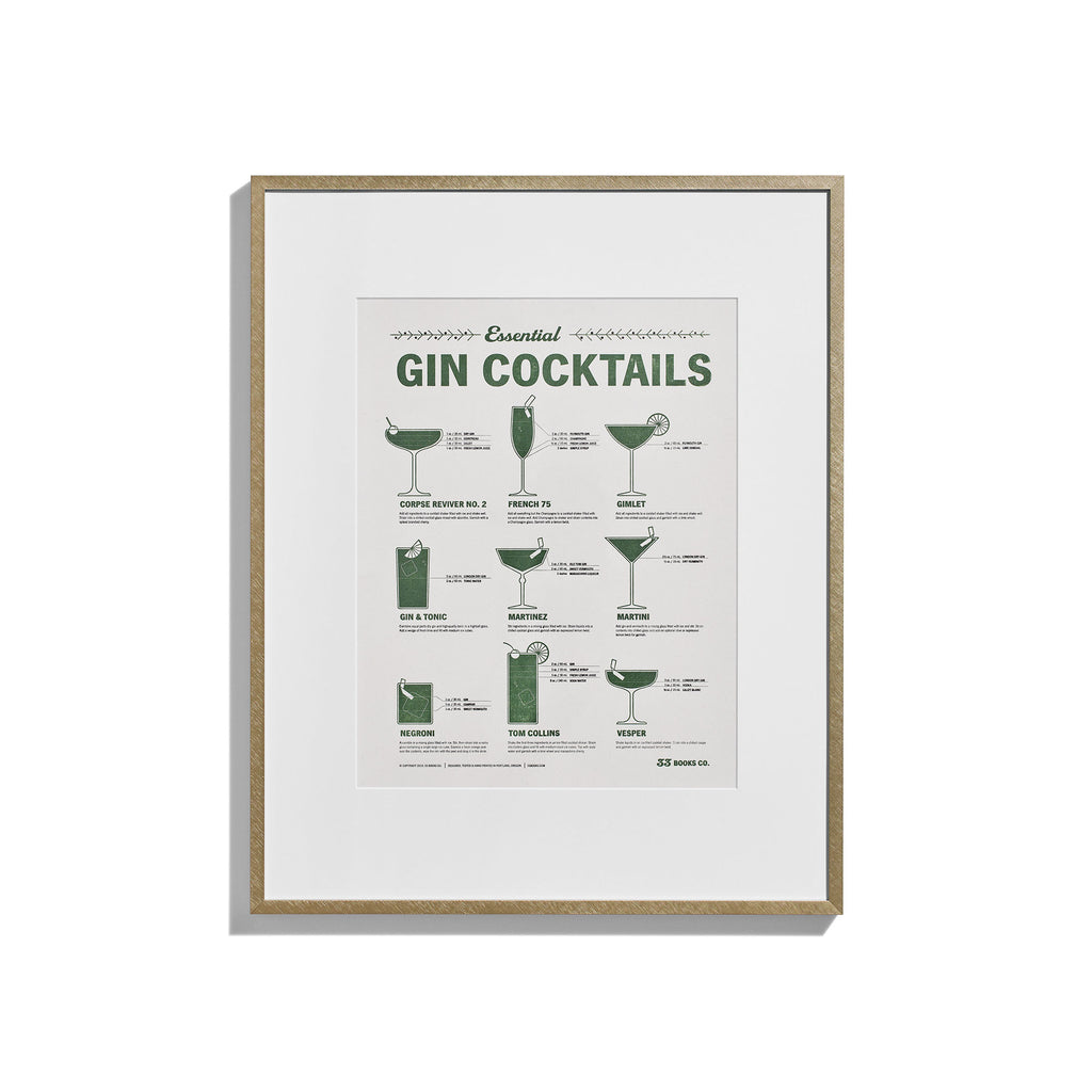 Essential Gin Cocktails is a frameable* 11 x 14 inch (28 x 36 cm) guide to creating nine classic gin cocktails, distilled into a simple, attractive print that's perfect for hanging in your gin den, gin parlo(u)r, gin bar or gin kitchen. Gin gin!