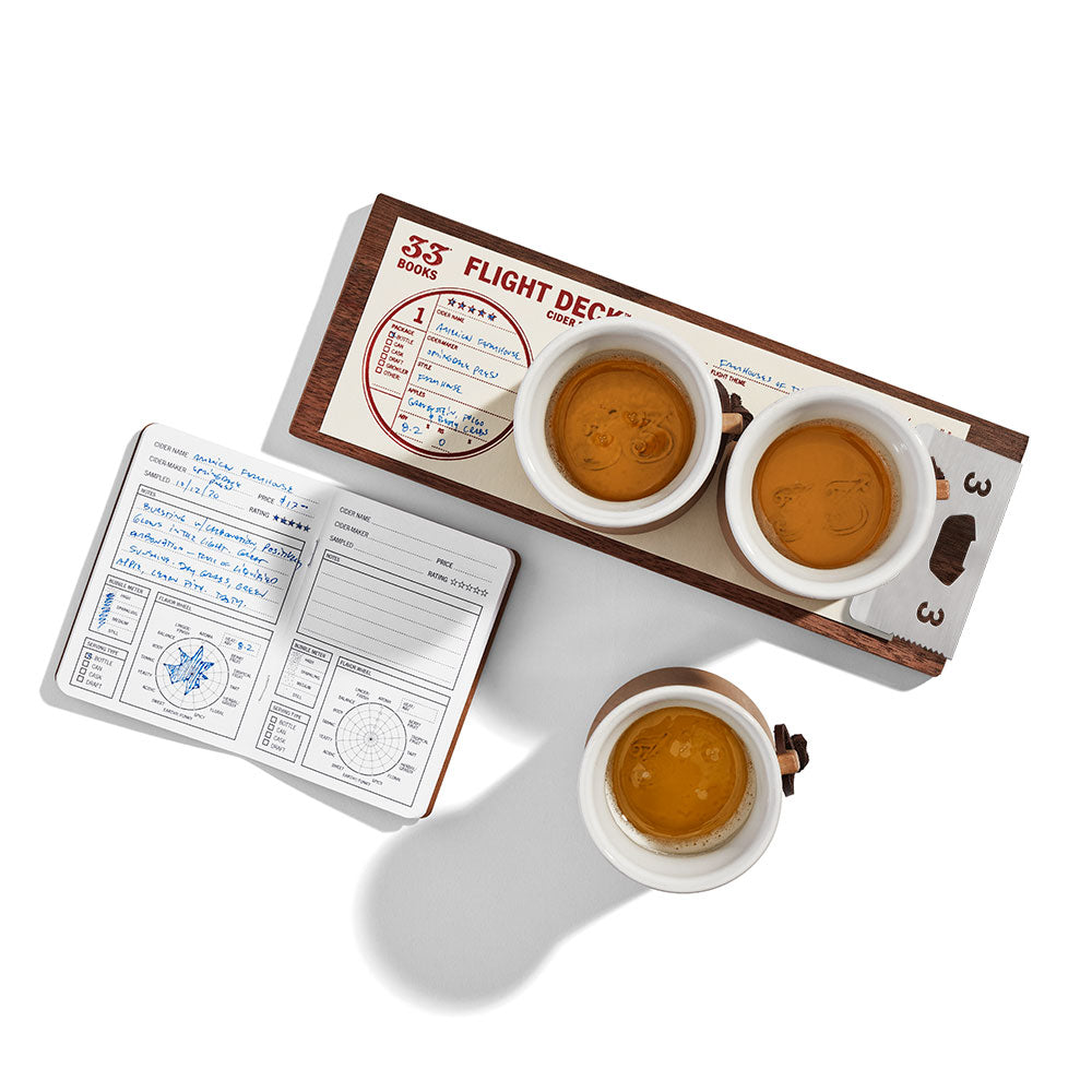 If you enjoy trying different ciders, Flight Decks are for you. Use them to chart your cider-tasting experiences, labeling each one and noting specs like apples used, ABV, and more before you embark. Then, place a mug* containing that liquid directly on the deck. As you taste, you'll have the specs at arm's length while you sample each cider.