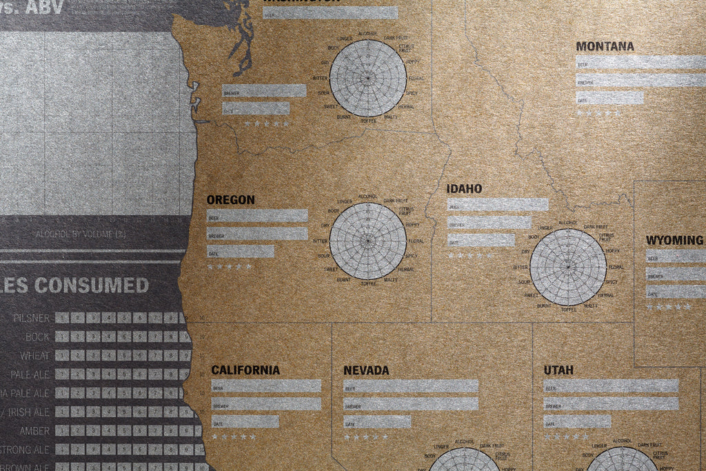 The only way to include every state was to make this poster big. It's a whopping 39 inches from sea to shining sea, and 25 inches tall. There's a spot to review a beer from all 50 states, even the minuscule Rhode Island. Sorry, no Guam.